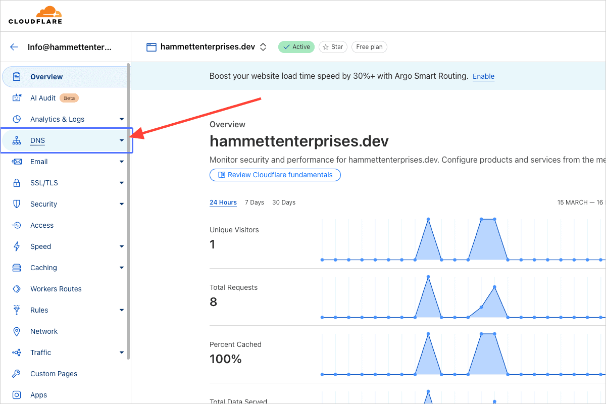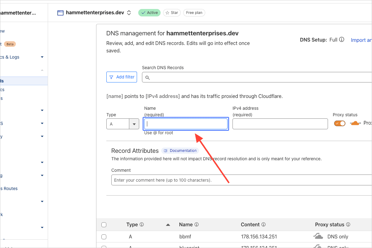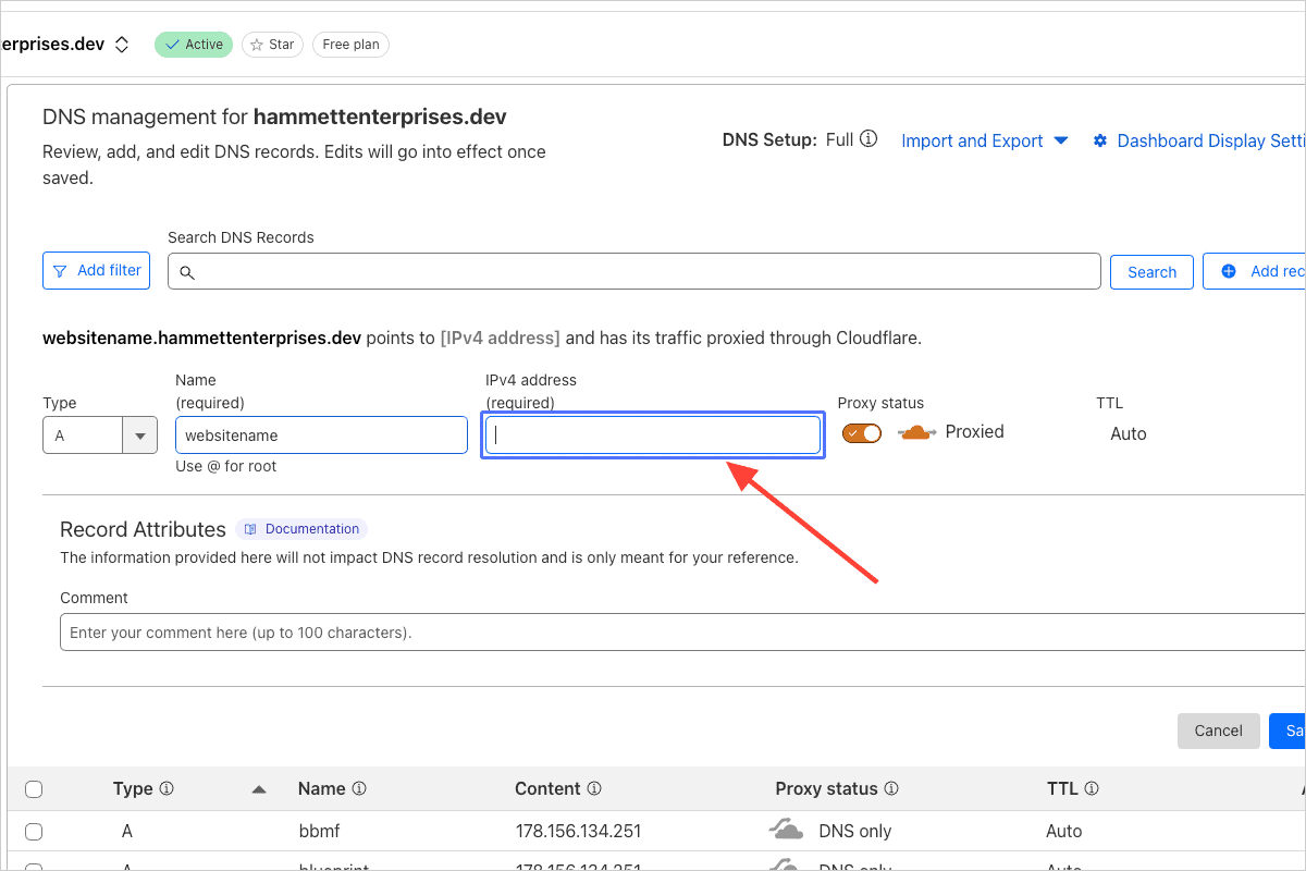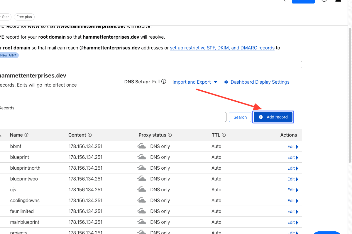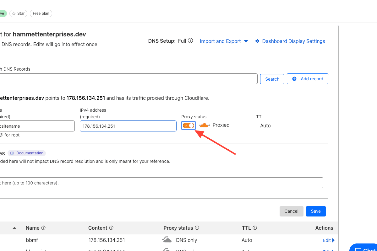 Scope: This SOP outlines the steps for configuring DNS records in Hammett Enterprises' Cloudflare account. The goal is to set up a subdomain under the development domain, hammettenterprises.dev, for the client's website. This configuration is essential for enabling SSL certificate installation after the WordPress si